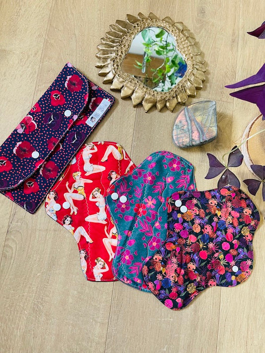 Kit 3 Serviettes menstruel Flux Moyen plus une pochette de transport imperméable taille M