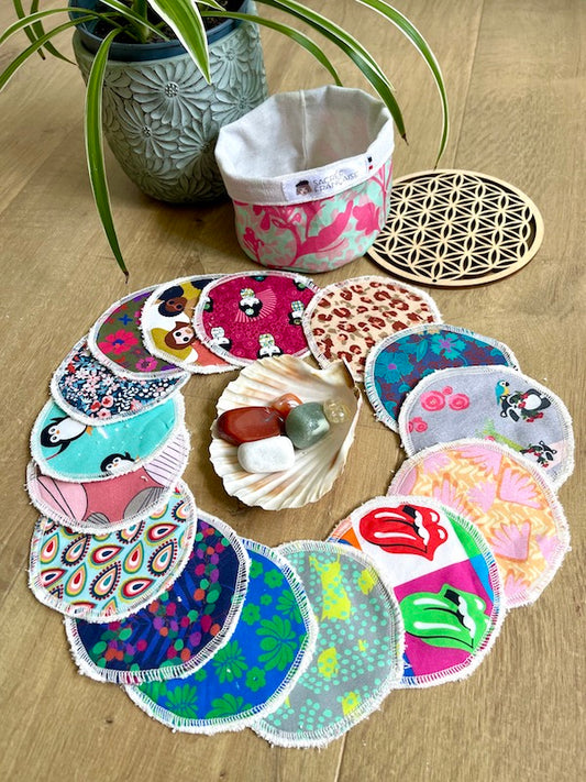 Cotons démaquillants par lot de 15 + panière ronde